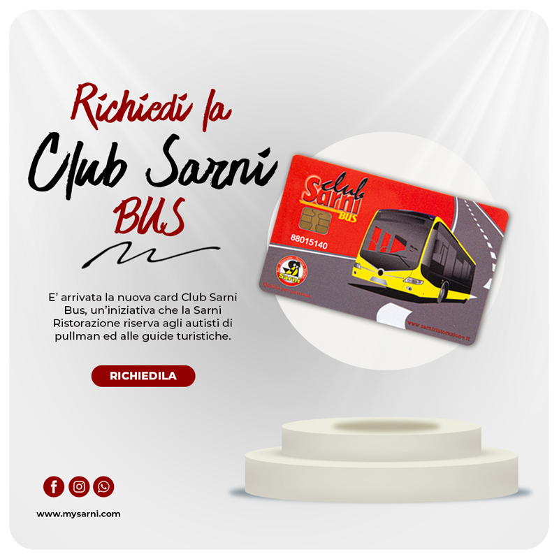 E’ arrivata la nuova card Club Sarni Bus, un’iniziativa che la Sarni Ristorazione riserva agli autisti di pullman ed alle guide turistiche.